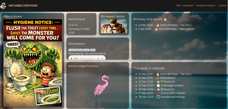 A WordPress dashboard system for rotating cards, structured visual layouts, and display-oriented information boards.